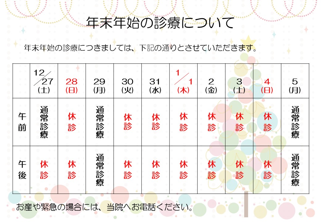 休診前後は大変混み合い、待ち時間が長くなることが予想されます。